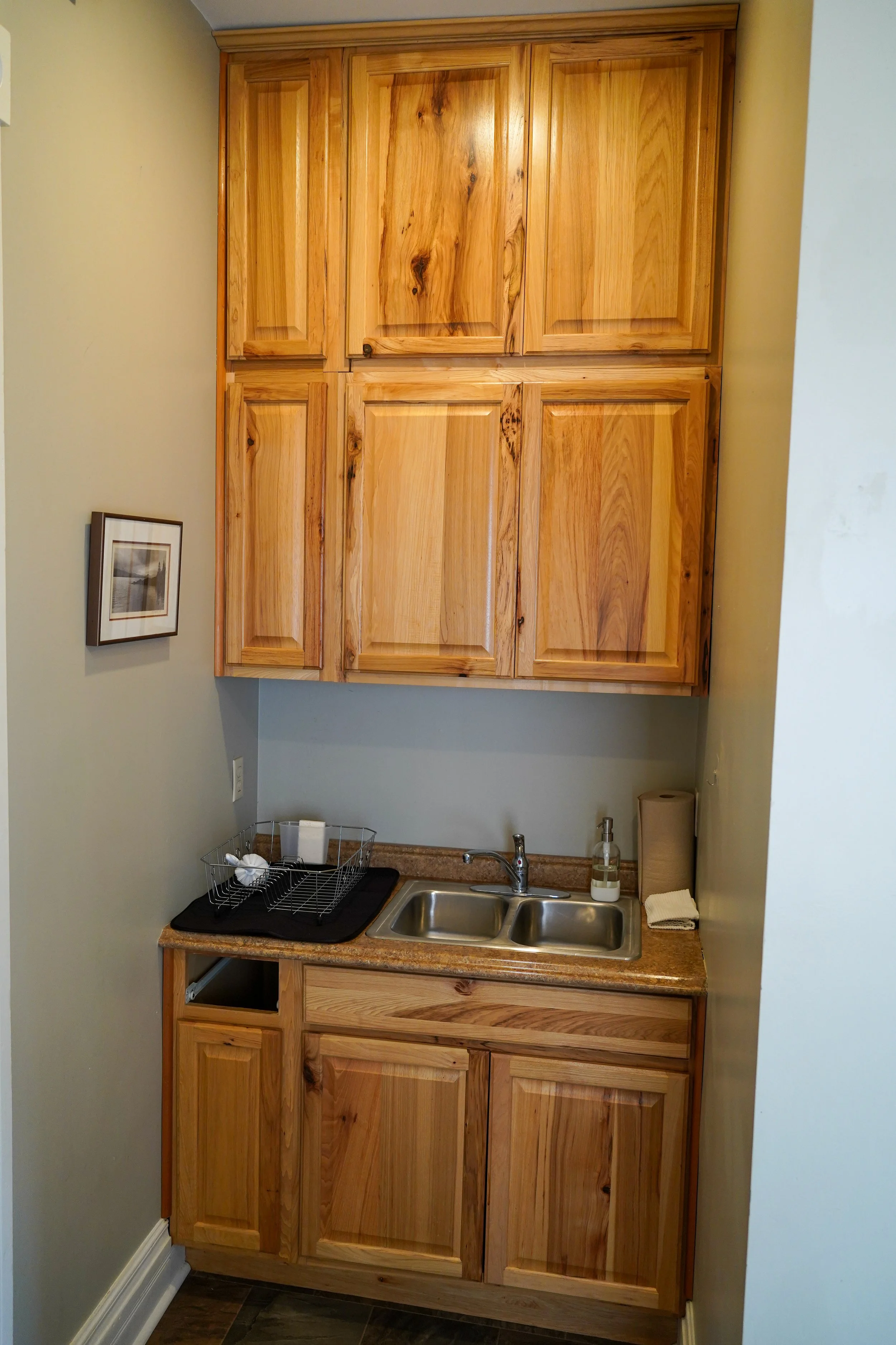 The Storm Peak Suite offers 450 square feet of comfortable living space with one queen size bed. Highlights include authentic victorian mining era decor and a fully stocked kitchen.